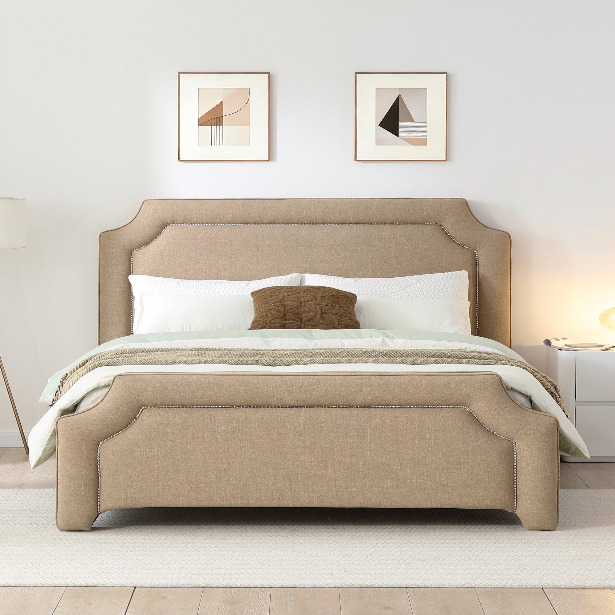 Elegant Upholstered Bed Frame With Nailhead Trim