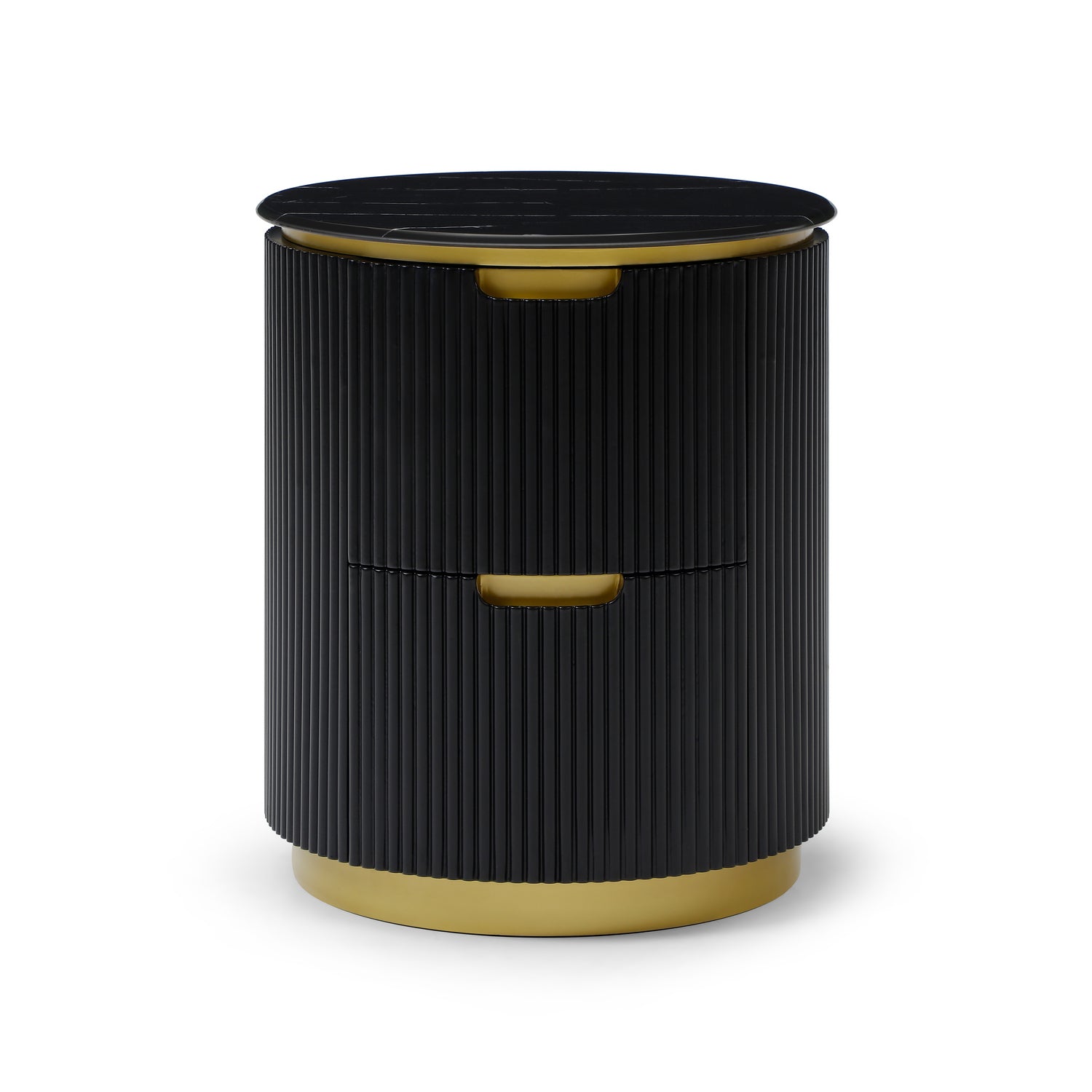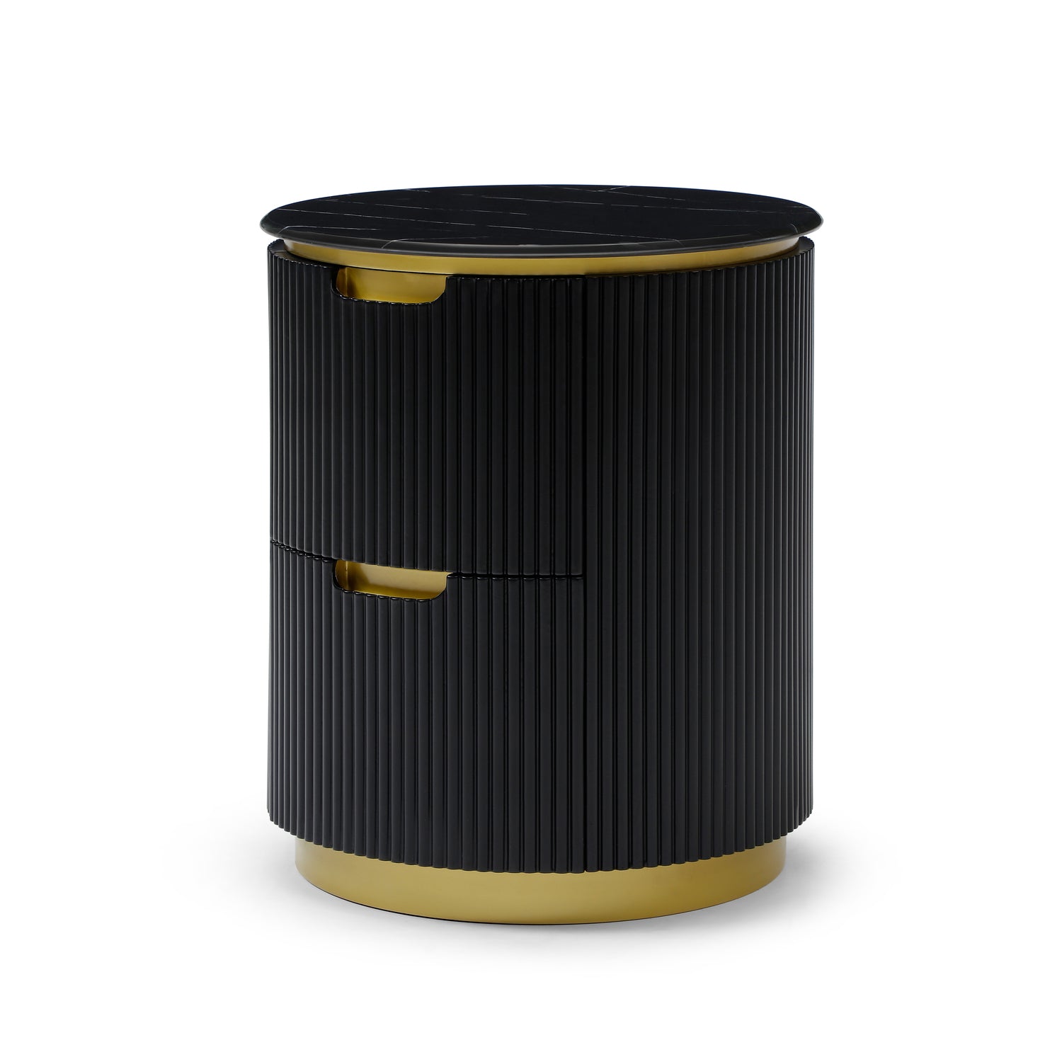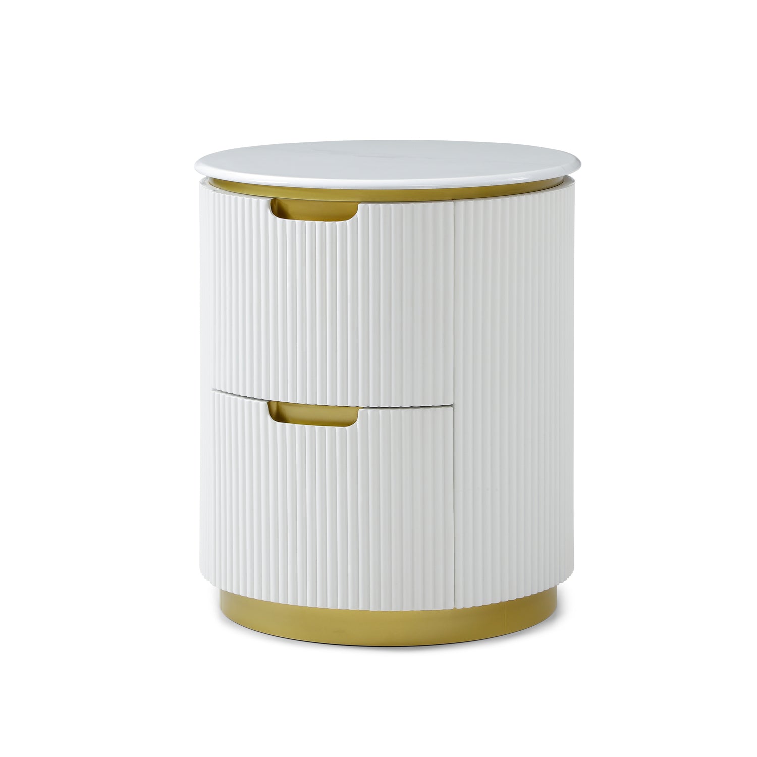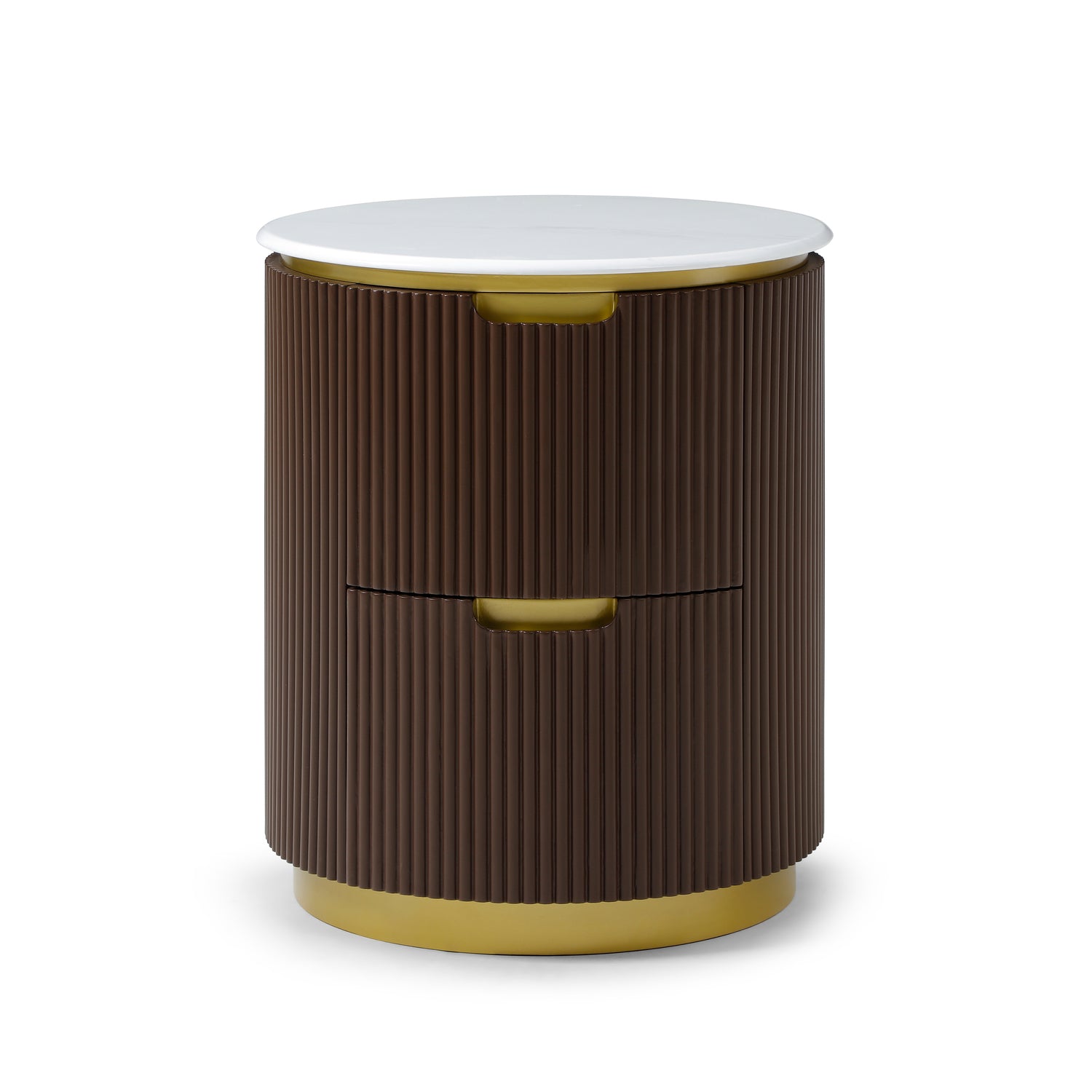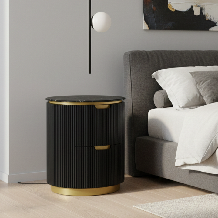 Modern Ribbed Nightstand With Drawer & Brushed Brass Accents