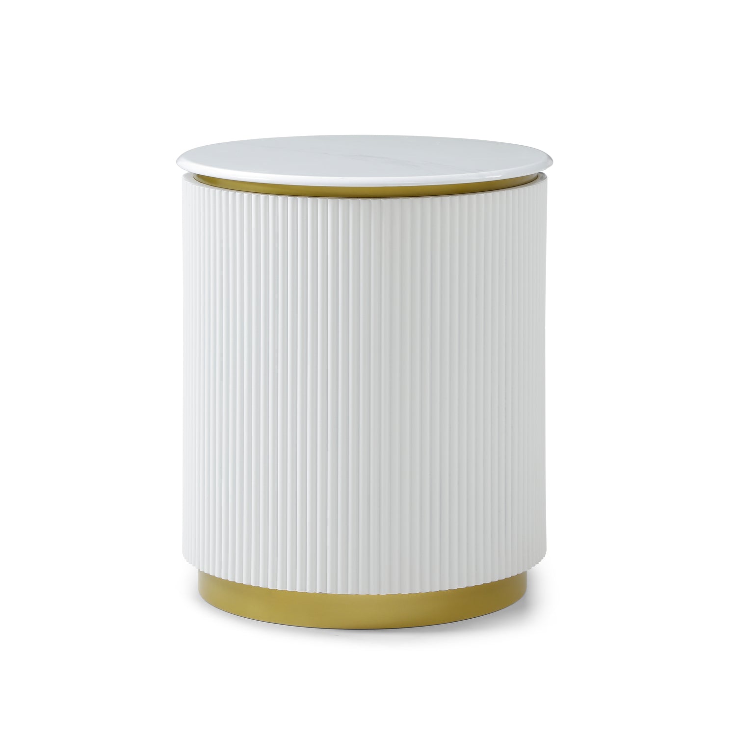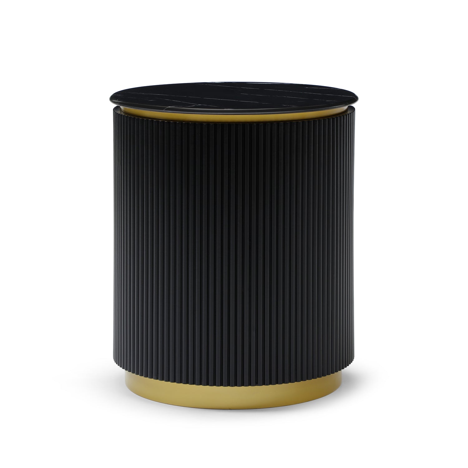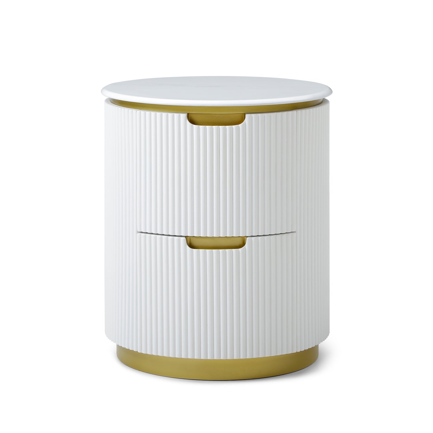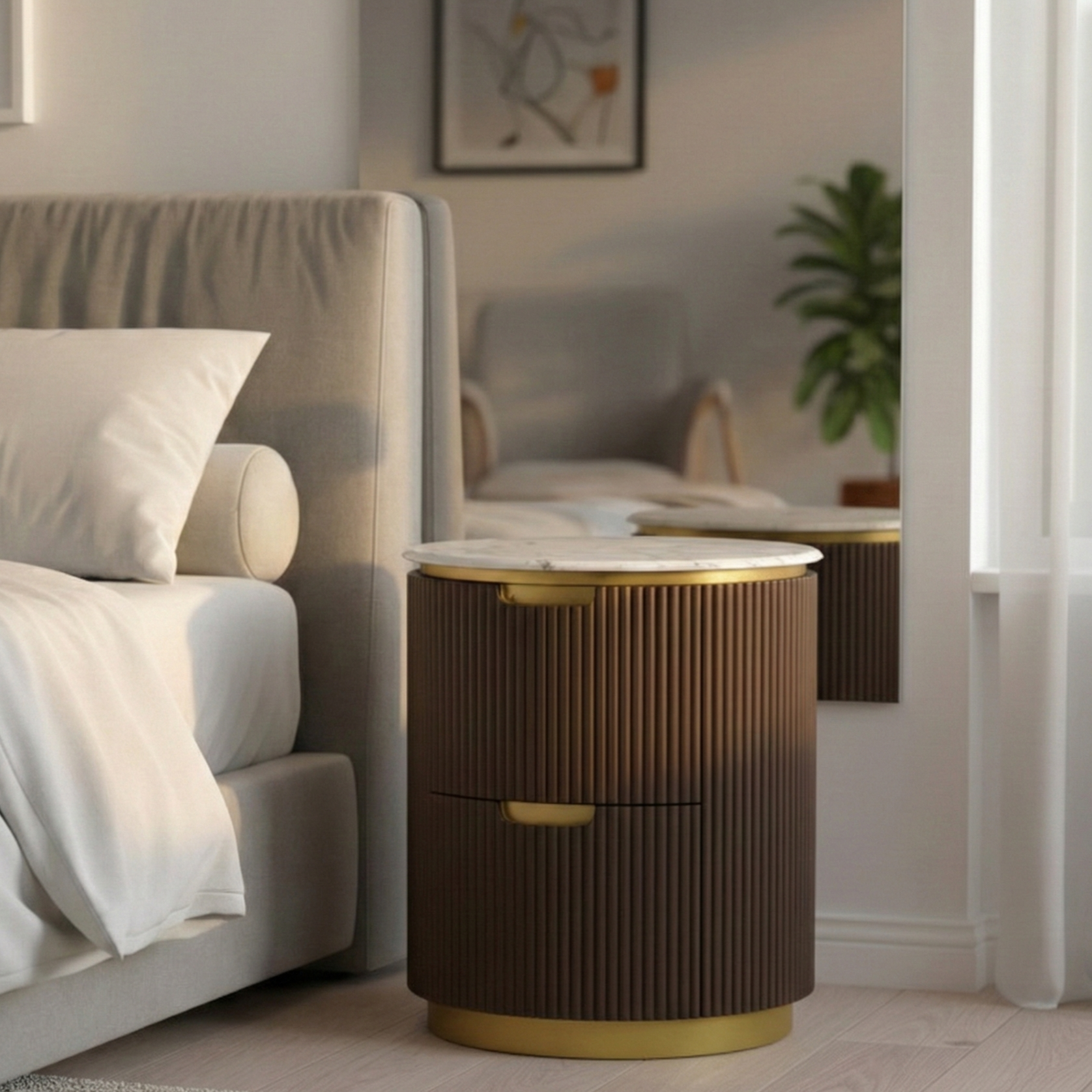 Modern Ribbed Nightstand With Drawer & Brushed Brass Accents